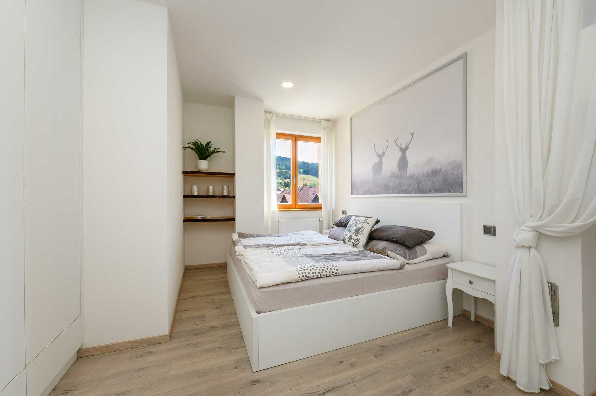 Tento příjemný apartmán v centru Železné Rudy nabízí ideální místo pro odpočinek i aktivní dovolenou. K dispozici jsou dvě ložnice s manželskou postelí a dvě velké terasy, ze kterých se otevírá nádherný výhled na šumavské samoty a ikonický kopec Velký Javor (Großer Arber). Po dni na lyžích nebo procházkách vás potěší relaxace ve wellness přímo v objektu. Ráno si můžete vychutnat kávu v kavárně hned vedle a večer zajít do restaurace pod apartmánem na skvělou večeři. Komfort a příroda v jednom – perfektní volba pro vaši dovolenou.